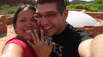 We spent the day in Sedona and decided to go for a day hike in Red Rock State Park. Michael was driving and I, of course, was agitated (and if anyone knows Michael, you know why). We arrived at the park and drove to the Visitor's Center where they had an amazing view from the overlook located at the top of the building. Michael said he wanted to just stand there for a little to take in the view and I was in a hurry because I had to use the restroom. It was then that I noticed he seemed to be getting a little nervous over something. He began saying to me, "I love you with all my heart and if you let me, I always will," and before I knew it, he was down on one knee asking me to marry him! I immediately said "Of course!" and that was the beginning of the rest of our lives together.